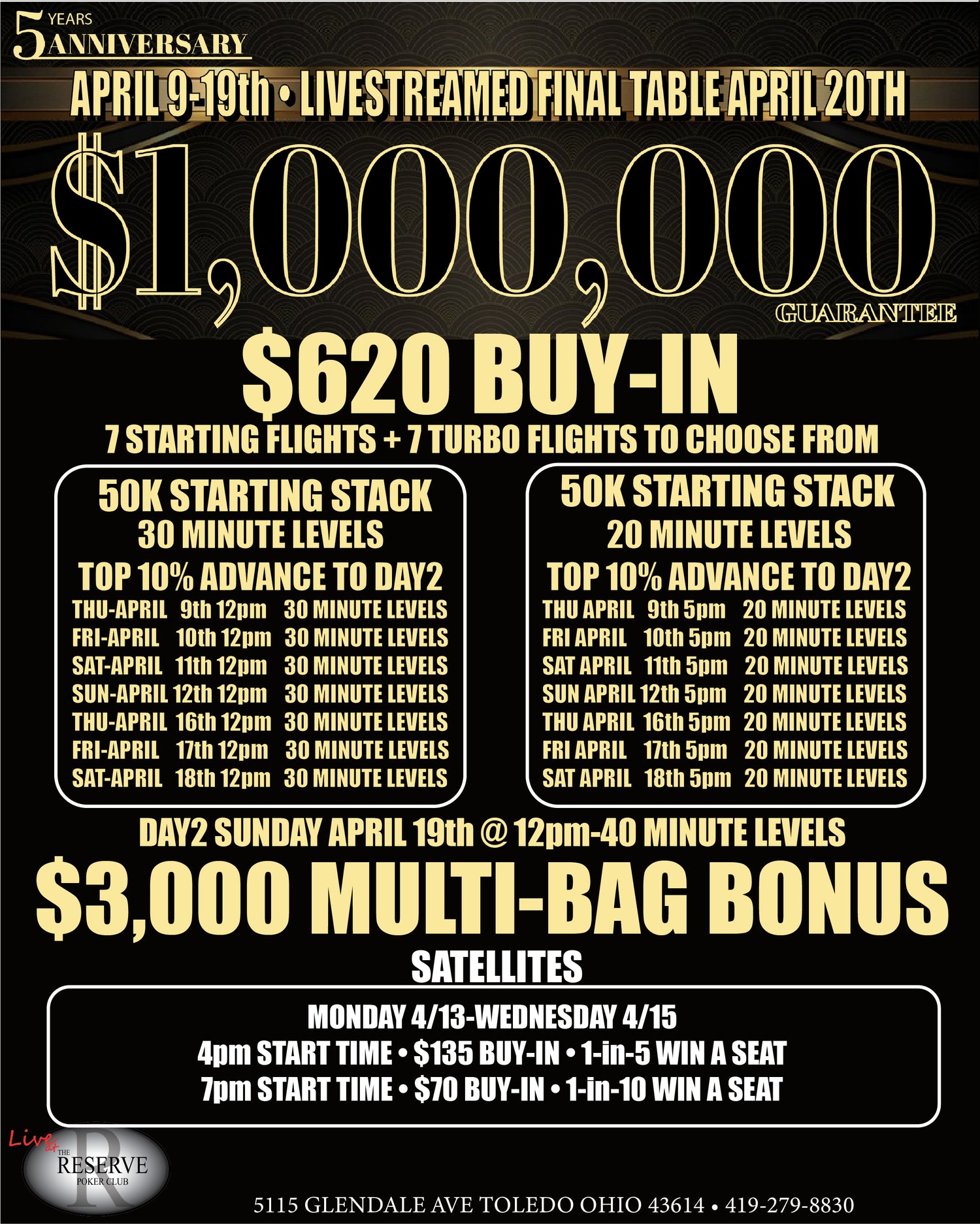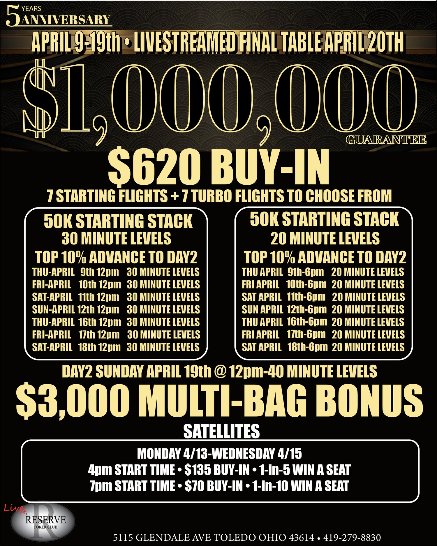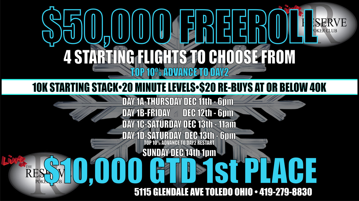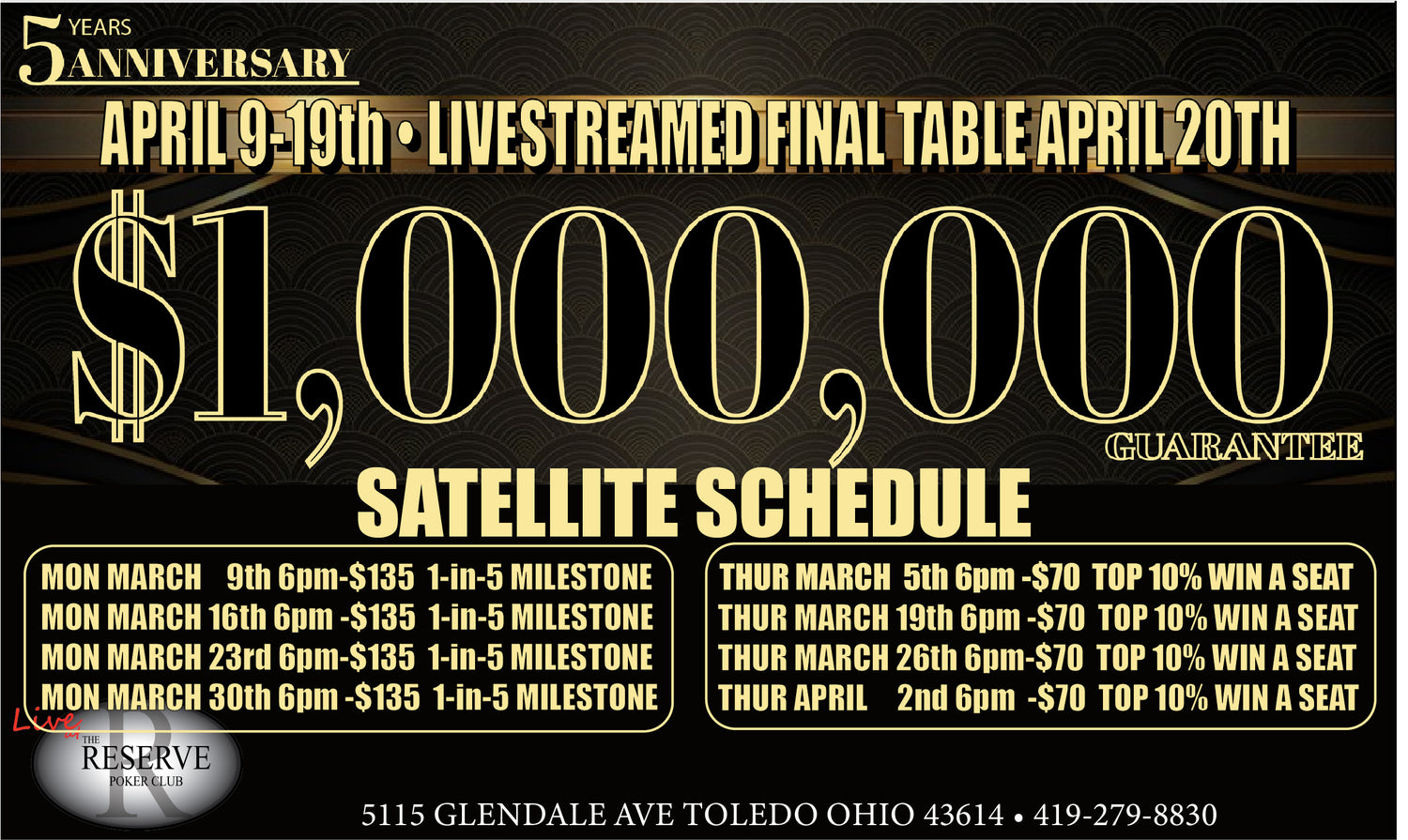 The Reserve Poker Club is home to the ONLY Livestream Studio In The Midwest!! We Also Host Some Of The biggest & best poker tournaments & Cash Games in the Midwest! This Includes but is not limited to, No-limit Texas Hold'Em, Limit Texas Hold'Em, Pot Limit Omaha & other games upon request.
